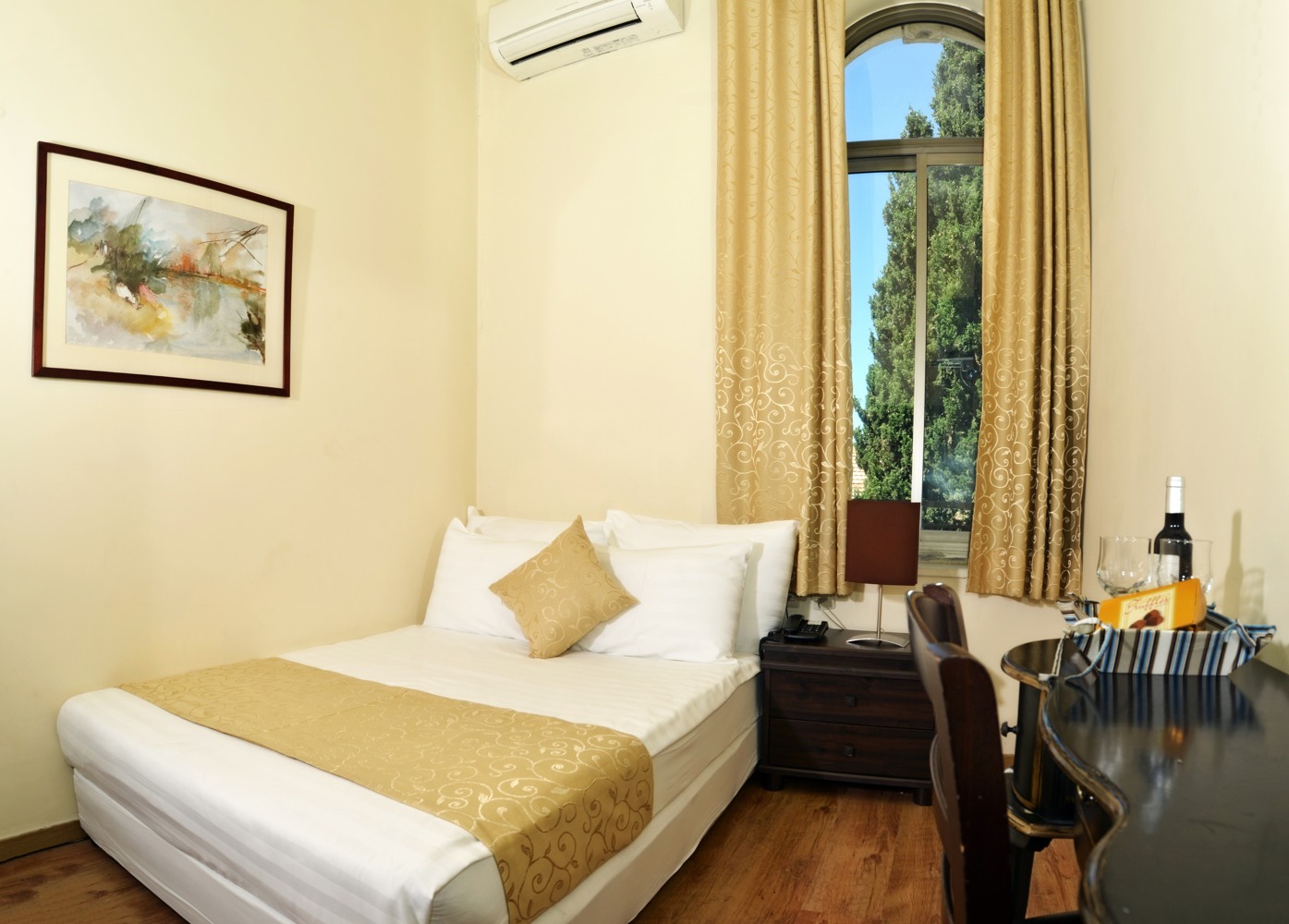 חדרי היחיד שלנו, הם קטנים ואינטימיים, אך התקרות הגבוהות והחלונות המקושתים מפצים ומשרים רחבות.