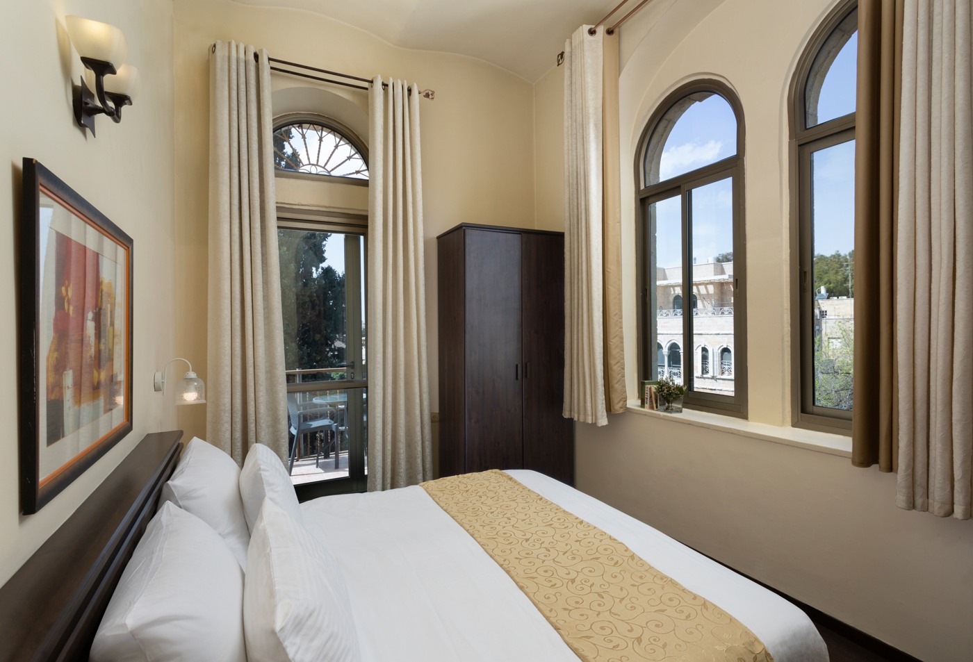 החדרים שלנו מיוחדים במינם, לכולם תקרות גבוהות (4 מטר), חלונות מקושתים, פריטי אבן עתיקים וחלקם צופים לגינה פורחת.